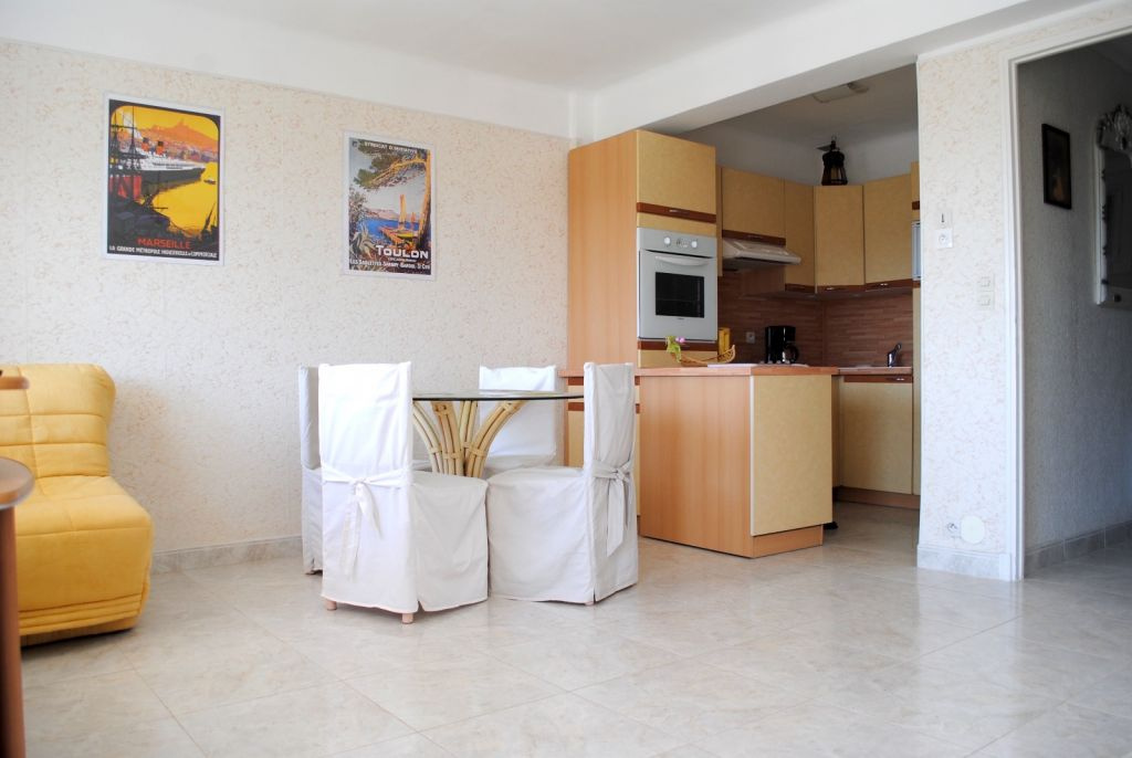 Carré d'or, superbe quartier. Très bel appartement T1/2 meublé à deux minutes à pied des plages. Appartement de 36m2 situé dans le carré d'or. Grand hall d'entrée avec deux couchages, grand séjour avec lit dépliant, cuisine ouverte équipée. Salle d'eau avec wc. Terrasse avec vue dégagée d'environ 10m2. Résidence sécurisée avec de nombreuses places de parking. Quartier calme et plages au bout de la rue... Loyer 600€ + 50€ de charges Dépôt de garantie 1200€ Honoraires agence: 486€ TTC Mandat numéro 0098 Disponible à partir du 10/04. Agence du Vieux Port